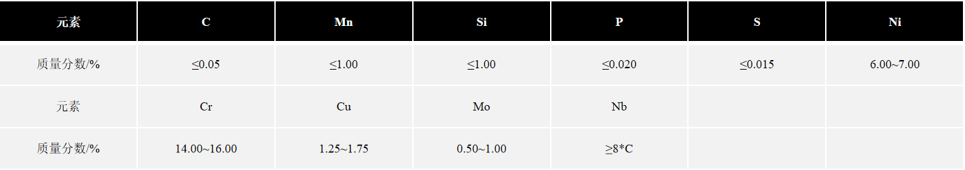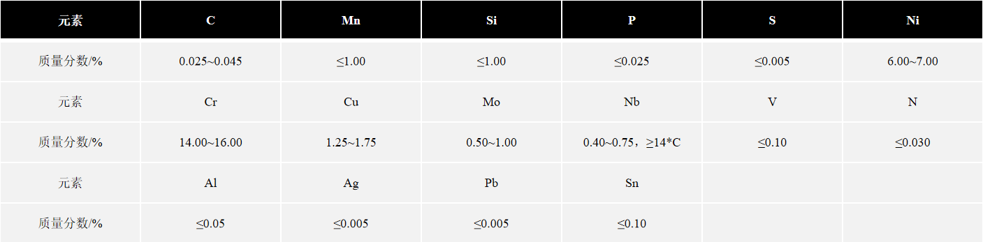 04Cr15Ni7Cu2MoNbVN是 Cr-Ni-Cu-Mo-Nb 低碳馬氏體沉淀硬化型不銹鋼,主要以低碳馬氏體相變強(qiáng)化、碳化物及金屬間化合物析出強(qiáng)化,其機(jī)械性能主要取決于時(shí)效溫度。該合金具有非常好的耐腐蝕性能(類似于304不銹鋼),具有中等強(qiáng)度(類似于410型不銹鋼),650℃下具有優(yōu)異的抗氧化性,具有良好的可加工性、可焊性。