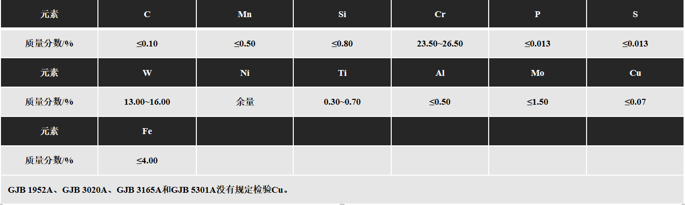 摘自 GB/T 14992,雜質(zhì)元素分析有區(qū)別的摘自 GJB 3317A 和GJB 3318A
