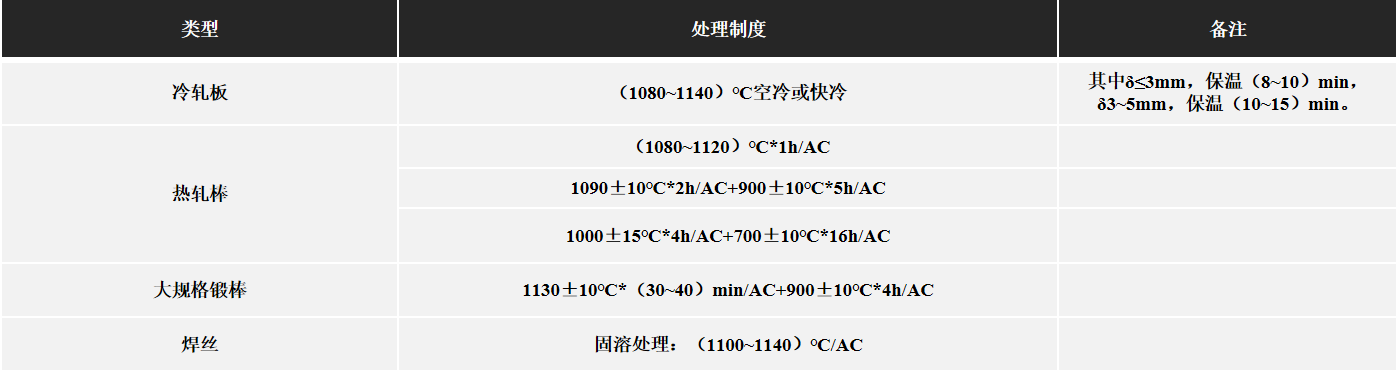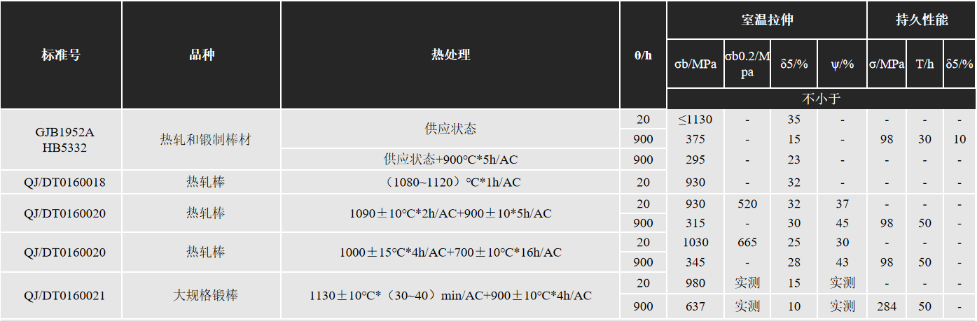 摘自HB/Z140、QJ/DT0160018、QJ/DT0160020、QJ/DT0160011各品種的熱處理制度為: