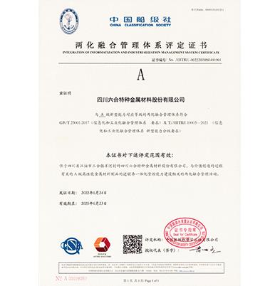 兩化融合管理體系評(píng)定證書